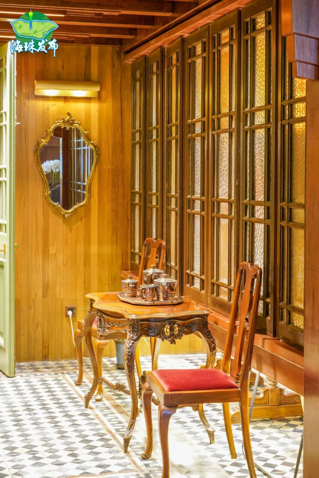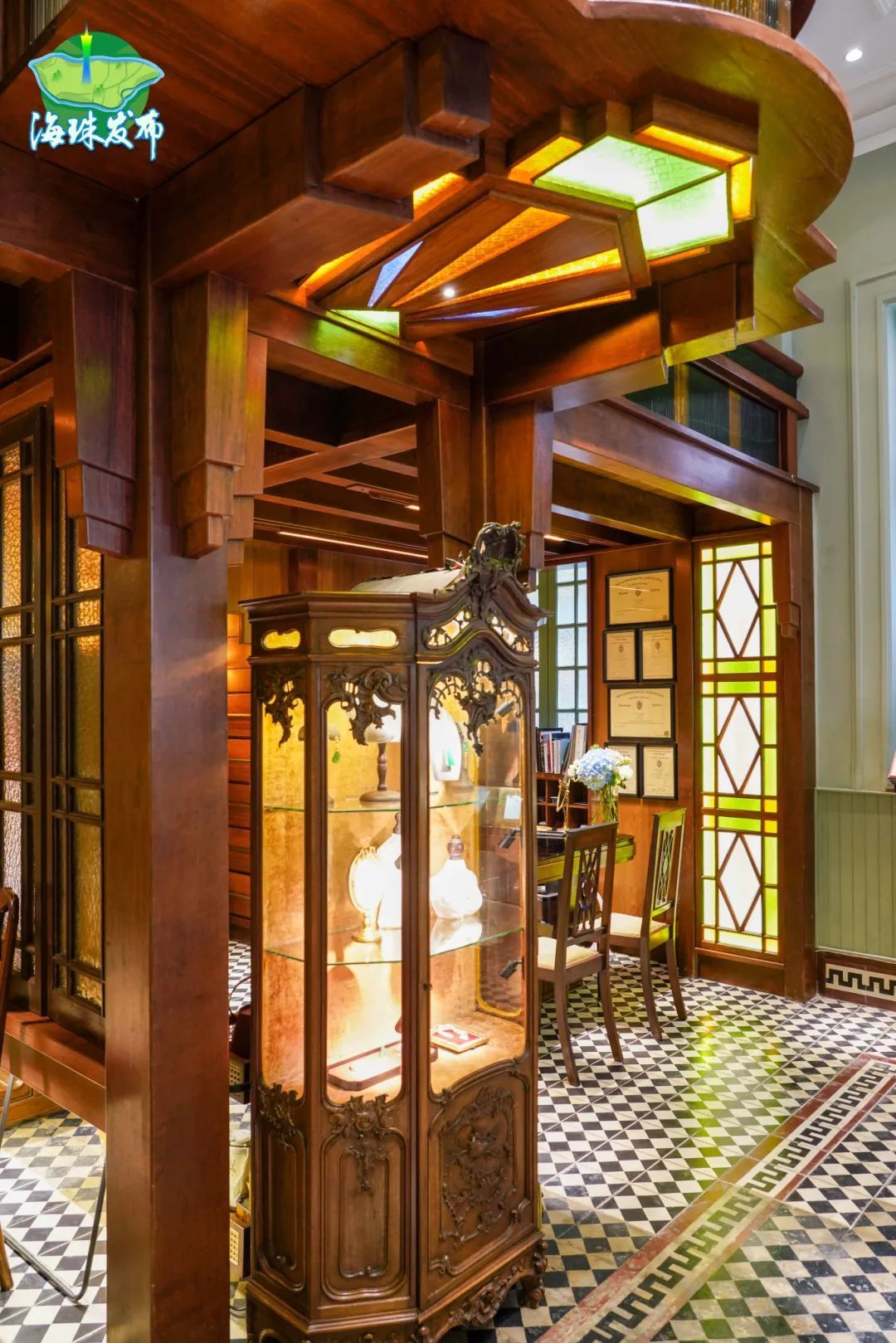 “我们不是重建,而是唤醒。”同和里18号主理人奉微说道。在修缮过程中,奉女士深入了解建筑历史与时代文化,结合传统工艺与现代审美,巧妙地融合了Art-Deco建筑艺术的元素(20世纪20-30年代盛行的欧式艺术风格),大量使用流线型线条、对称简洁的几何构图来装饰,色彩明亮且对比强烈,让老建筑焕发新生,让历史继续传承。
